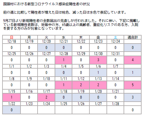 新型コロナウイルス感染症村内発生状況について(1月19日更新)