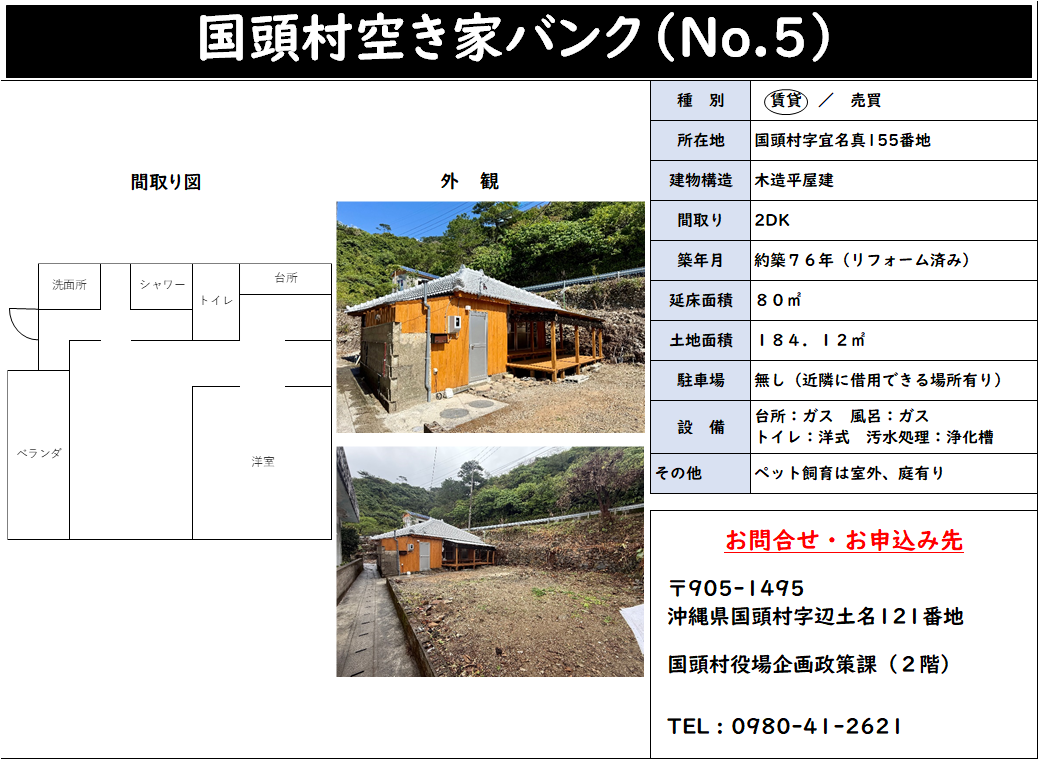 国頭村空き家バンク(第5号)〜公開中〜